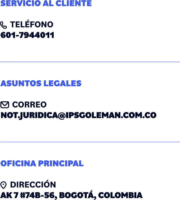 ASUNTOS LEGALES: not.juridica@ipsgoleman.com.co